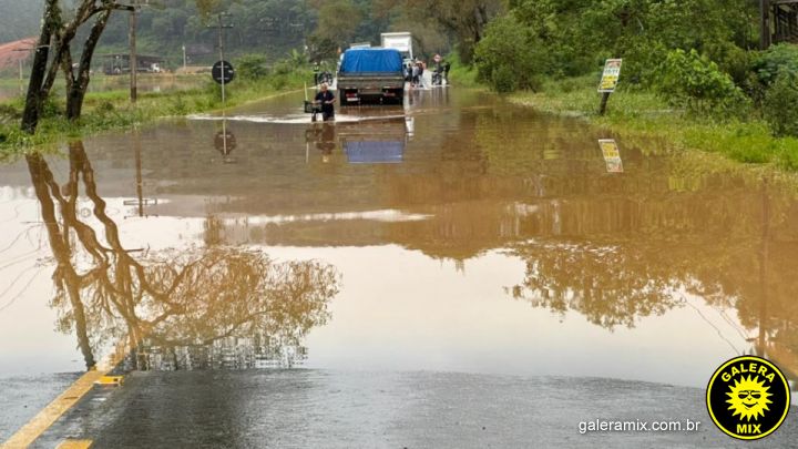Na manhã deste sábado (18), motoristas que trafegam entre São João Batista e Canelinha enfrentam interdições na SC-410. A via está bloqueada devido ao alagamento, uma consequência das intensas chuvas que elevaram o nível do Rio Tijucas acima de 8 metros na madrugada.