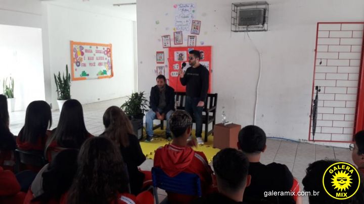 O outro palestrante foi, Gustavo de Simas, que tem 28 anos de idade, é natural da cidade de Tijucas, Santa Catarina. Formado em Gestão Pública, está cursando sua segunda graduação, jornalismo.