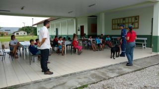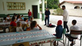 O objetivo da palestra era mostrar para as crianças um pouco do trabalho realizado pelo Corpo de Bombeiros em prol da comunidade. O Cabo Veronesi explicou como os bombeiros fazer para atender os mais diversos tipos de ocorrência. Depois, os alunos tiveram a oportunidade de acompanhar uma sessão de treinamento do cão bombeiro, com direito à busca e pista de obstáculos.