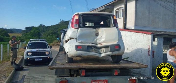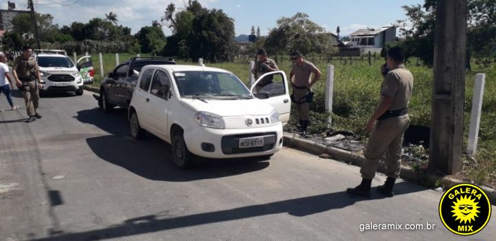 A guarnição recebeu informações que possivelmente o veículo estaria no estacionamento do pátio do mercado Kock, onde se deparou com o veículo saindo do estacionamento em alta velocidade colocando a vida de pessoas em risco, os policiais deram sinal de parada através da Sirene e Giroflex afim de fazer a abordagem durante a fuga em alta velocidade pela rodovia SC410, trafegando pela contramão da rodovia, retornando a rotatória girando diversas vezes pela mesma entrando no perímetro urbano e voltando a rodovia diversas vezes dirigindo por cima de calçadas, na contramão das vias não acatando a ordem de parada.