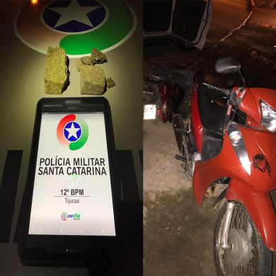 Na noite deste Domingo 18-11 por volta 23h, A guarnição do tático de Tijucas em rondas na cidade de Canelinha, avistou uma motocicleta placa MGP 3859 sendo conduzida por um masculino em atitude suspeita, ao retornar para proceder a abordagem o masculino empreendeu fuga por aproximadamente 5km, pondo em risco a segurança no trânsito ao efetuar diversas manobras perigosas vindo a colidir no muro de sua residência na Rua Rosinha Laus.