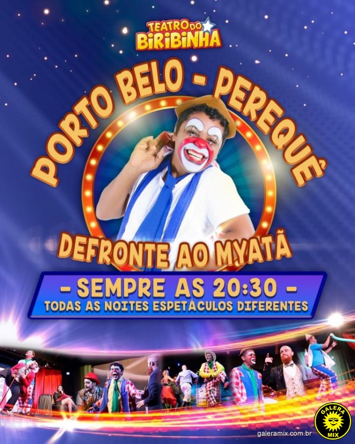 O Teatro do Biribinha já está instalado no bairro Perequê, em Porto Belo, onde realiza mais uma temporada de apresentações, reforçando a programação cultural da cidade durante o período de verão.