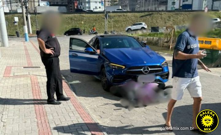 Na tentativa de fugir, o motorista acabou acelerando o carro, empurrou um Gol contra uma caçamba e atingiu uma moto. Para se salvar, a condutora pulou da moto, e a Mercedes veio arrastando a moto até o túnel da Havan, na Meia Praia. Matéria em atualização.