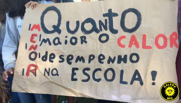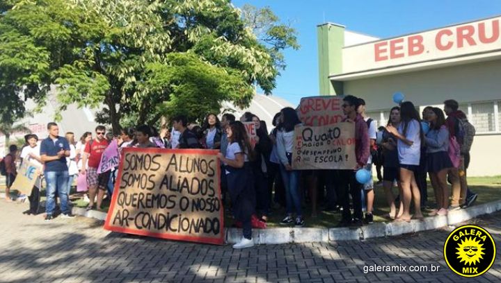 Alunos da Escola de Ensino Básico Cruz e Sousa em Tijucas, organizaram uma manifestação na manhã desta quinta-feira (27), em frente a instituição de ensino estadual. Com os rostos pintados, faixas e cartazes, os jovens protestaram pela falta de ar-condicionado nas salas de aula.