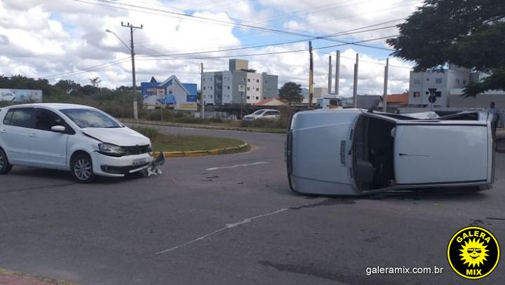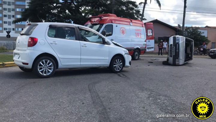 Um acidente envolvendo dois veículos, foi registrado por volta das 12h deste domingo (03), em Tijucas. O fato que acabou com um dos carros tombado na via, aconteceu na rotatória da rua 13 de Maio com a rua Antônio Bayer, região central próximo a indústria de vestuário Deliz.