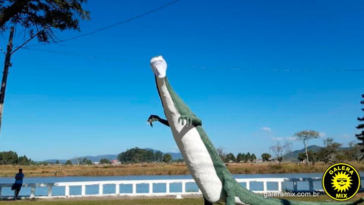 Diante disso o nosso Dino está devidamente protegido, dando exemplo a todos. A escultura representa Tijucas a 33 anos, e está localizada na praça Henrique José Ternes, região central da cidade.