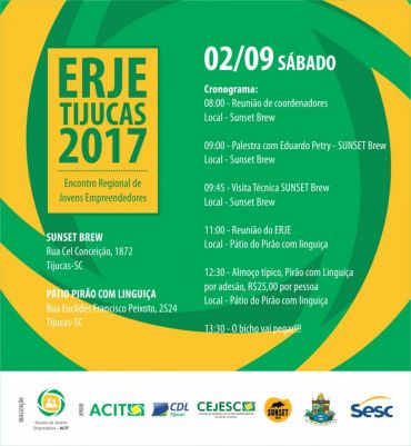 No dia 2 de setembro o Núcleo de Jovens Empresários da ACIT/CDL de Tijucas será o anfitrião do ERJE (Encontro Regional de Jovens Empreendedores) da Grande Florianópolis.