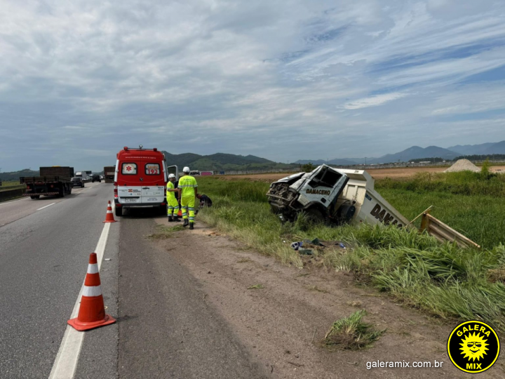 Um homem foi encaminhado ao Hospital Regional de São José após um acidente envolvendo o tombamento de um caminhão na manhã desta quinta-feira (8), na BR-101, em Tijucas.