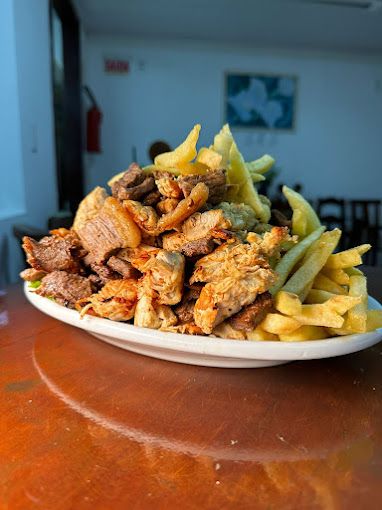 Entre os destaques, está o famoso churrasco na tábua, preparado no estilo dos tradicionais churrascos de festa de igreja. Durante a semana, ele é feito na chapa, e aos domingos ganha um preparo especial na churrasqueira.