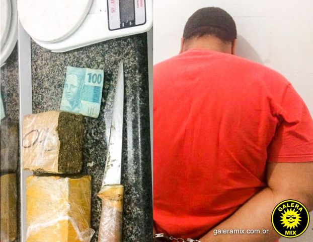 Ao ver os policias, Morninho arremessou uma sacola plástica por cima do muro e tentou fugir, mas logo foi detido. Na sacola, foram encontrados aproximadamente 552 gramas de maconha e uma balança de precisão. Já com D.A.P. e dentro de sua casa, foram encontrados R$ 100,00 em espécie e uma faca com resíduos de maconha, respectivamente.