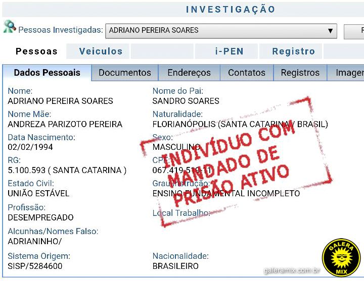 Adriano é natural de Florianópolis e era procurado pelo crime de tráfico de drogas, de acordo com o artigo 33 do Código Penal.