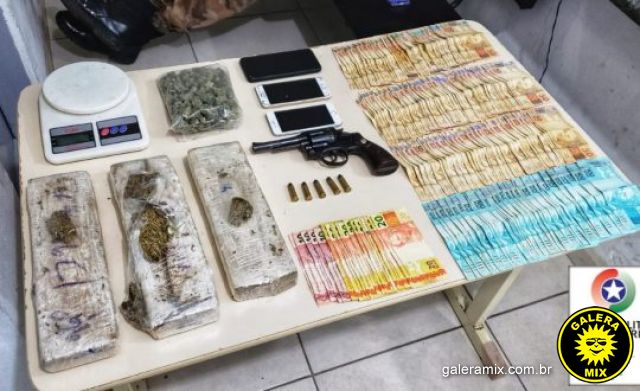 Diante do flagrante, os policiais realizaram a abordagem no local, logrando êxito na prisão dos quatro envolvidos. Em buscas pessoal e residencial, foram apreendidos os seguintes itens: