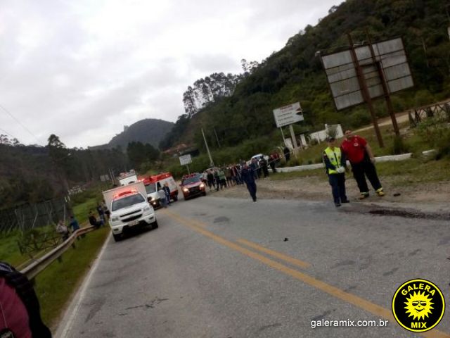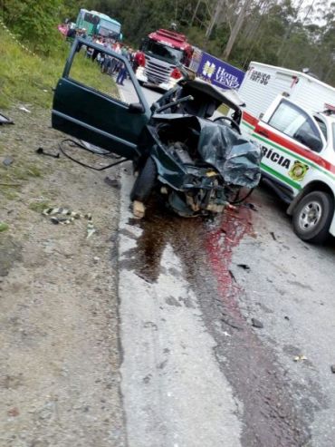 Segundo informações uma colisão frontal entre um Fiat/uno com placas de Florianópolis e GM/Onix com placas de Brusque, deixou além dos quatro ocupantes do Uno mortos no local, feridos os dois ocupantes do Onix. A batida ocorreu na curva da Fazenda Comandolli. Os socorristas do SAMU estiveram no local, prestaram atendimentos aos dois feridos, porém os passageiros do Uno já estavam todos em óbito, sendo 3 homens e uma mulher.