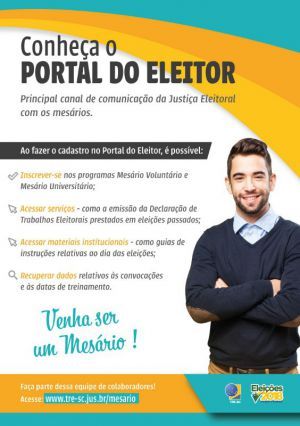 O Tribunal Regional Eleitoral (TRE) de Santa Catarina está com inscrições abertas para Mesários Voluntários. De acordo com o Tribunal, que pede auxílio dos municípios na divulgação das vagas, trata-se do eleitor que se habilita espontaneamente a atuar na recepção de votos e na condução dos trabalhos na seção eleitoral.