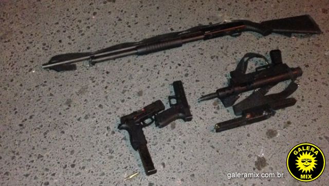 O bando estava fortemente armado com pistola, fuzis metralhadores cal 12 e escopetas. Os outros 6 fugiram em dois veículos, um dos automóveis foi encontrodo incendiado na entrada do presídio de Tijucas.