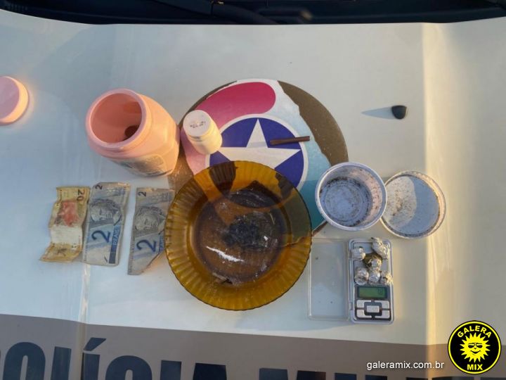 A Polícia Militar foi acionada após tomar conhecimento que em determinado local estaria ocorrendo tráfico de drogas em uma residência. Ao chegarem no local os polícias encontraram três pessoas identificadas pelas inicias G. H. V., 18 anos, C. E. A. M., 20 anos e M. DA C., 35 anos e mais um indivíduo não identificado em frente à residência.