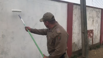 “Estamos pintando o muro da escola, que é pago com dinheiro público, e se voltarem a pichar, estarei aqui para pegar vocês. É através da educação que vamos mudar esse país”, afirmou o comandante.