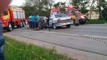 Os dois lados da rodovia foram bloqueados, o que gerou congestionamento. A batida ocorreu entre um Fiat/Palio de cor vermelha e um IMP/Renaut prata, com placas de São João Batista.