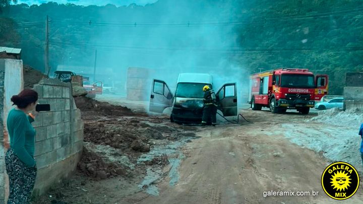 Uma van de uma empresa de Tijucas teve parte da frente destruída ao ser atingida por um incêndio veicular. O caso foi registrado próximo das 12h, da manhã desta quarta-feira, (15), na Avenida Falcão, no bairro Sertãozinho, em Bombinhas.