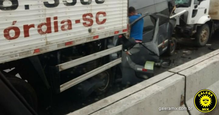 Um acidente envolvendo duas carretas e uma van aconteceu na manhã desta sexta-feira (26) na BR-101 no km 117 em Itajaí, sentido Florianópolis. Duas pessoas ficaram feridas.