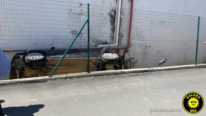 O carro caiu em uma vala, entre o mercado e uma loja de departamentos. Bombeiros foram acionados e fizeram o encaminhamento da jovem para o hospital. Não há informações se o condutor se feriu.