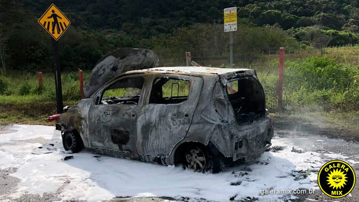 Um carro ficou completamente destruído após pegar fogo na manhã desta segunda-feira (20), em Itapema. O incêndio aconteceu próximo das 11h, na marginal da Br-101, nas proximidades do posto da PRF (Polícia Rodoviária Federal), na entrada da Praia do Estaleiro, no bairro Ilhota.