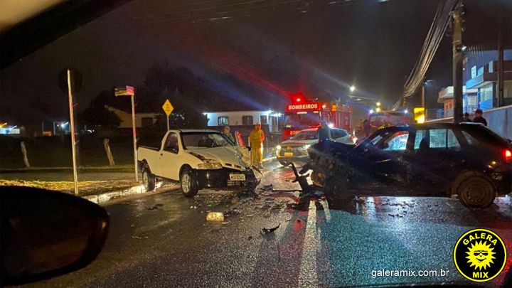 Chovia no momento em que houve o acidente. Com a pancada, os veículos ficaram com a dianteira danificada e os destroços ficaram espalhados pela via. Bombeiros prestaram socorro, mas não há informações de feridos até o momento. A Polícia Militar também foi acionada para o registro da ocorrência.