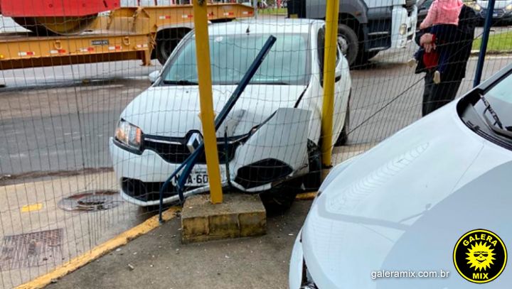 Com impacto da batida um dos carros atingiu a grade de uma revendedora de veículos.