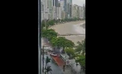 Vídeo: Avenida Atlântica em Balneário Camboriú fica alagada após chuva forte