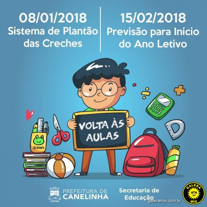 Já para os alunos da Educação Infantil e do Ensino Fundamental, o ano letivo 2018 inicia no dia 15 de fevereiro.